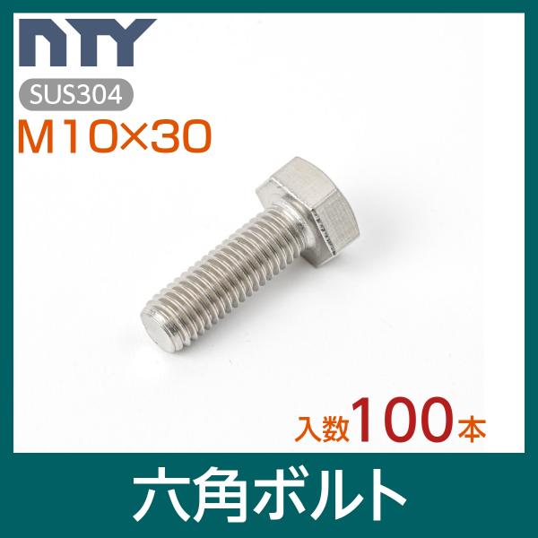 六角ボルト 全ねじ M10×30 小箱入り100本 首下:30mm 平径:17mm 厚み:7mm ねじ径:10mm ピッチ:1.5mm SUS304 ステンレス ボルト 修理 DIY 補強 部品