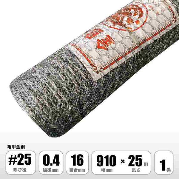 亀甲金網 #25 5分目 線径0.4mm 目合16mm 幅910mm×25M巻 配管 保温 断熱 ダクト工事