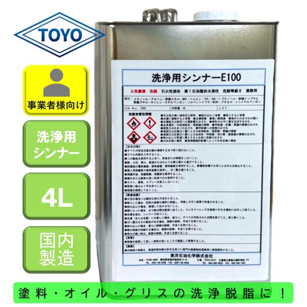 洗浄用シンナーE100 4L ラッカーシンナー代替品 塗装剥離剤 うすめ液