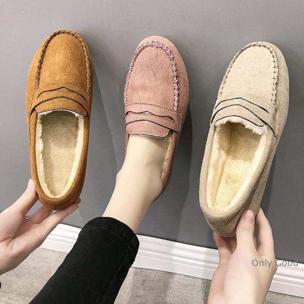 モカシン フラット ぺたんこ もこもこ 裏起毛 シンプル 可愛い 快適 ふかふか 秋冬 美脚 売れ筋 定番 暖かい ムートン ローヒール楽