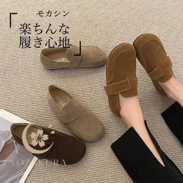 モカシン レディース フラットシューズ 森ガール ローファー ラウンドトゥ レトロ 靴 フラット底 大人可愛い スリッポン シューズ 楽ちん 春 秋