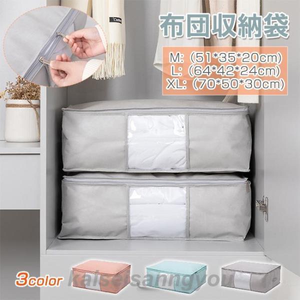 布団収納袋 布団袋 収納ケース透明窓付きで便利 取っ手付き 収納ケース 大容量 立体 持ち運び 寝具 布団入れ ダウン収納ケース ファスナー 衣類 布団圧縮袋