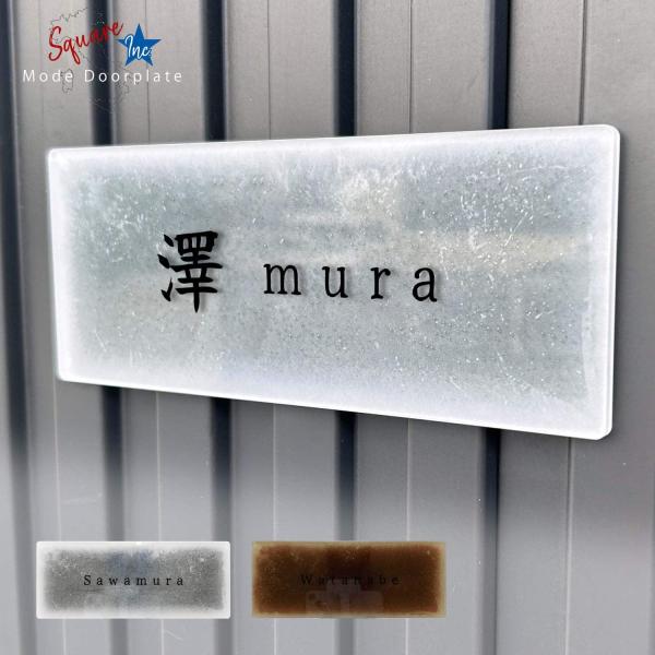表札 おしゃれ 戸建て 宅配ボックス 郵便ポスト アクリル ドアプレート 正方形 ネームプレート 貼るだけ 両面テープ 箔押し 銀箔 Mode Doorplate 筆記体No1