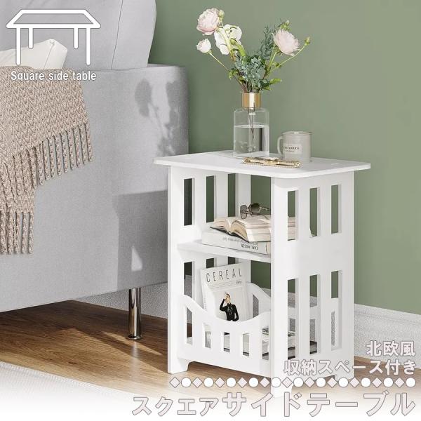 サイドテーブル ベッドサイドテーブル スクエアテーブル ナイトテーブル 四角形 多目的ラック ホワイト 収納ラック 区分60S NP-051