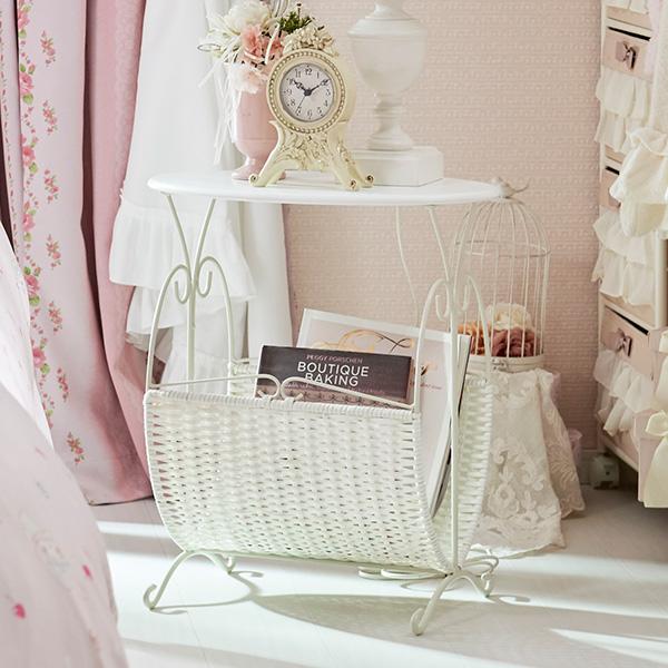 ラウンドサイドテーブル/ラック付き テーブル コーヒーテーブル ベッドサイドテーブル | サイドテーブル ロマンティックプリンセス 可愛い 姫系(直送)