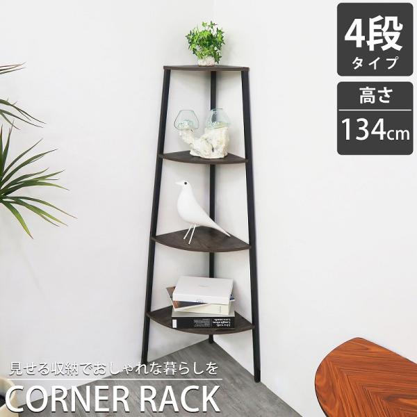 コーナーラック スリム 4段 おしゃれ オープンシェルフ ラック 棚 収納ラック 収納棚 リビング 北欧 モダン シェルフ 飾り棚 RA-01BKGL