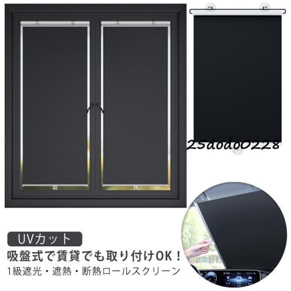 真っ黒 遮熱 賃貸OK ロールスクリーン ブラック 断熱 遮光 吸盤付き 間仕切り UVカット プライバシー保護 遮光カーテン 日差し 西日対策 車