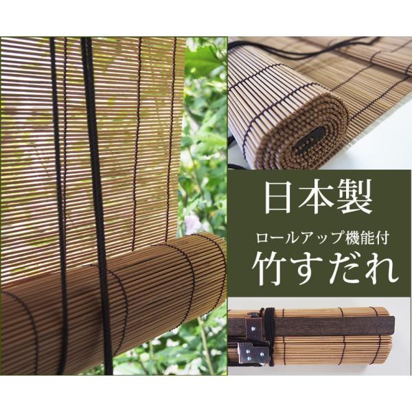 竹すだれ (巻上機能付) 国産竹使用の日本製 【炭化簾】幅88cm×高さ135cm 腰窓用