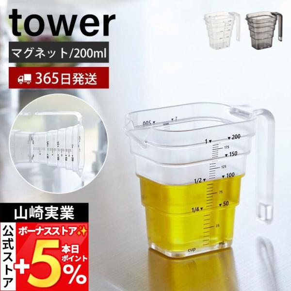 山崎実業 公式 タワー マグネット段々計量カップ 200ml tower 磁石 メジャーカップ 見やすい メモリ 1カップ 耐熱 食洗機対応 6919 6920