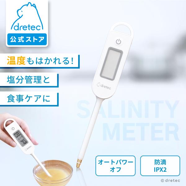 塩分計 塩分管理計 塩分測定器 dretec ドリテック 防水タイプ IPX7 塩分チェッカー デジタル 塩分 減塩 低塩 健康グッズ 高血圧 ホワイト EN-905RIV
