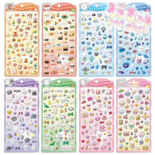 うるちゅるポップシール ぷっくり立体シール ホログラム キラツヤ キラキラ 金箔 パン お寿司 天使 海の生き物 オバケーヌ 小鳥 シマエナガ スイーツ