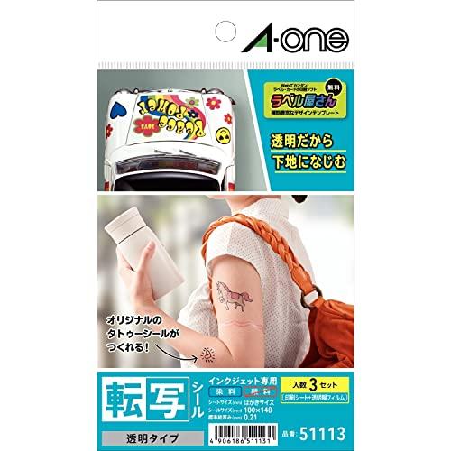 エーワン 転写 タトゥーシール 透明 はがきサイズ 3シート 51113