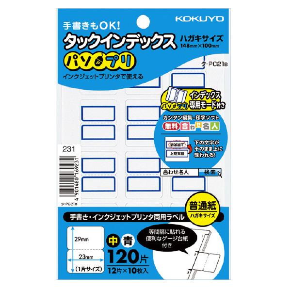 コクヨ タックインデックス インデックス シール パソプリ 中23×29mm 120片 無地 タ-PC21W