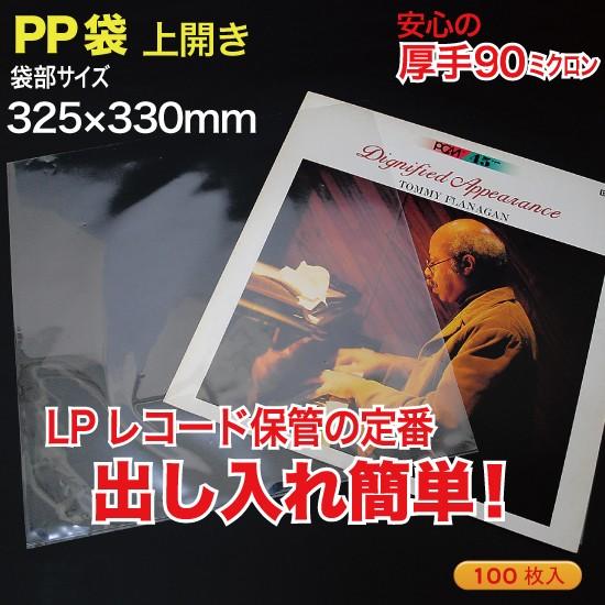 PP袋(透明)上開き 厚口0.09(90ミクロン)325×330mm LPレコード用 100枚入 (LD-PP30Z)