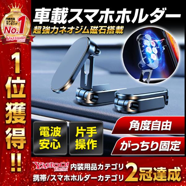 スマホホルダー 車載ホルダー マグネット スタンド 車用 N55磁石 真空吸着 吸盤 720°回転 マグセーフ 2WAY 折り畳み式 片手操作 全機種対応